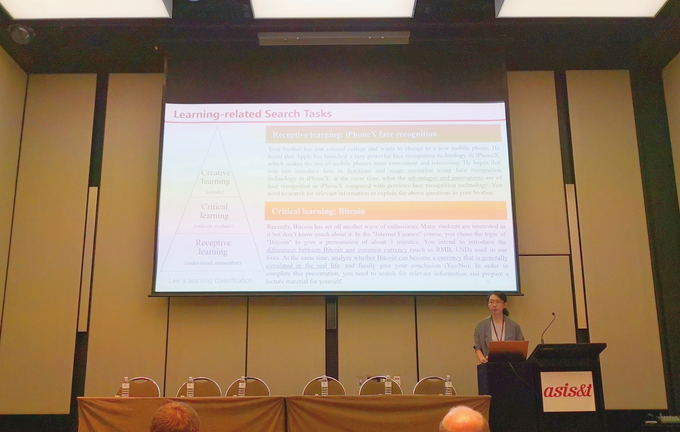 今年,刘涵蕊同学、刘畅副教授和Nicholas J.Belkin教授合作完成的长文章《Investigation of Users' Knowledge Change Process in Learning-Related Search Tasks》被会议录用并进行了展示,这一研究从过程角度对学习型搜索中的知识变化情况进行了分析,受到了多方关注,并展开了深入讨论。